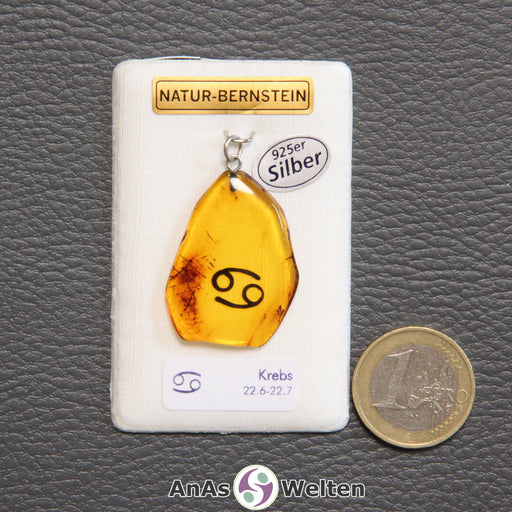 Anzahl: 1 Bernstein Anhänger Sternzeichen Krebs mit Öse (925 Silber) Größe: ca. 3 bis 3,5 cm Gewicht: ca. 1 bis 3 g Der Bernstein Anhäng...