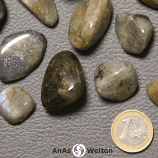 Anzahl: 1 Labradorit Trommelstein Größe: ca. 2,0 bis 3,5 cm Gewicht: ca. 5 bis 29 g Sternzeichen: Krebs (2. Dekade) Trommelsteine sind wu...